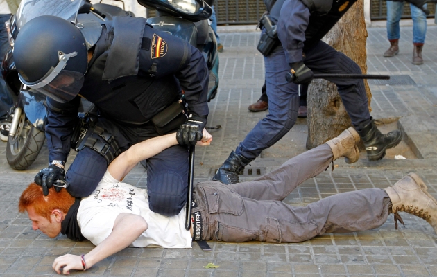 La Jornada - [Tradução do Diário Liberdade] Desde o fim de semana passado, em Valência, a Polícia Nacional do Estado espanhol está reprimindo com violência inusitada os estudantes que protestam contra os cortes aos orçamentos educativos empreendidos pelo governo direitista que encabeça Mariano Rajoi, quem tenciona dessa maneira satisfazer as exigências da União Europeia e dos organismos financeiros internacionais antes que cobrir as necessidades sociais e garantir direitos fundamentais. Em suas tentativas por desalojar os revoltados "pais de família, professores, alunos e parlamentares" das ruas e de vários centros de ensino, as forças da ordem lesionaron a dezenas de pessoas, prenderam sem justificativa estudantes menores de idade, bateram em jornalistas e desataram perseguições judiciais com base em cargos que, segundo demonstraram em vários casos gravações de video, são inventados. O que mostram os videos, em troca, é que com frequência os elementos da força de choque espancaram pessoas que não cometeram mais falta que se encontrarem nos lugares em que se desenvolveram as cargas policiais. Uma expressão que ilustra a atitude encarniçada da polícia contra os manifestantes é a que utilizou o chefe policial Antonio Moreno, quem se referiu aos manifestantes como "o inimigo". Para maior exasperação cidadã, esse servidor público descreveu a atuação da polícia como uma resposta comedida e mesurada a supostos ataques físicos dos mobilizados em defesa da educação. Com certeza, a brutalidade policial, que várias vozes na mídia espanhola comparam com as cargas dos "grises" ("cinzentos"), como se era conhecida popularmente a força de choque da ditadura franquista, em referência à cor das suas fardas, tem aumentado exponencialmente o descontentamento inicial, e agora os manifestantes não só exigem que se deponha a determinação de cortar o orçamento educativo, como também demandam, ademais, a demissão da delegada do governo espanhol na Comunidade Valenciana, Paula Sánchez de León. É preciso não perder de vista que a brutalidade policial desatada pelo regime de Rajoi é só o mais recente episódio de uma saga de violência não necessariamente física do governo contra a população. Efetivamente, a classe política de Madri decidiu transladar os custos da crise na que se encontra sumido o país e a população em geral, a qual deve enfrentar o aumento do desemprego, a redução de seu nível de vida e a perda ou a redução de serviços educativos, de saúde, morada e outros. Se o governo do Partido Socialista Operário Espanhol (PSOE) claudicou da sua plataforma política, que prometia a promoção e a defesa do estado de bem-estar, sua sucessão na Moncloa, a cargo do Partido Popular de Rajoi e de José María Aznar, faz frente ao mal-estar popular decorrente mediante a força bruta policial e deixa entrever, desde o início, as tendências autoritárias que justificam que se descreva essa organização política como pós-franquista, não só porque foi fundada principalmente por ex servidores públicos da ditadura, como o recentemente falecido Manuel Fraga, mas também por uma herança ideológica inocultável. Em definitivo, o Reino de Espanha foi colocado por seus governantes anteriores e atuais ante a possibilidade de uma escalada de explosões sociais, vagas repressivas e desesperança como a que tem lugar na Grécia. Se o cenário helénico chega a repetir-se em terras do Estado espanhol, Rajoi e sua equipe não poderão argumentar que ignoravam a perspetiva. Fonte: http://www.diarioliberdade.org |
