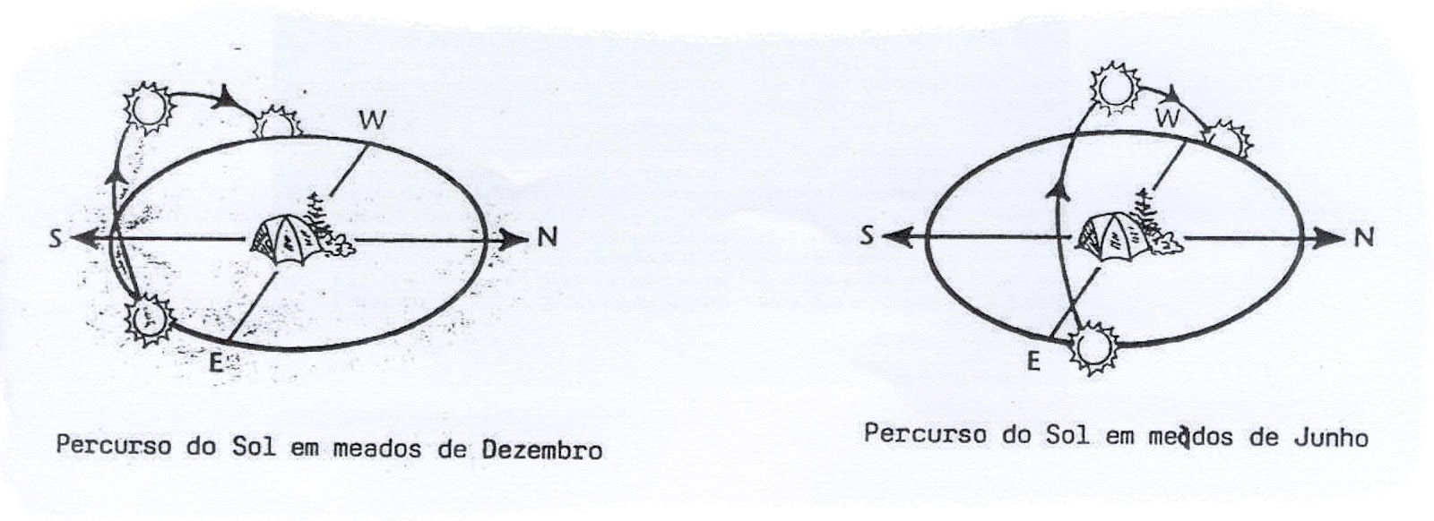 O Sol nasce a Este e põe-se a Oeste nos dias do Equinócio (por volta de 21 de Março e 21 de Setembro), mas ligeiramente a Sul destes pontos no Outono e Inverno e ligeiramente a Norte destes pontos na Primavera e Verão. Contudo convém lembrar que a direcção é função do nosso propósito. Se formos obrigados a atingir um ponto ou local específicos, é forçoso que alinhe a direcção pretendida com o Norte ou o Sul Magnéticos ou Geográficos. Mas se apenas pretende manter uma direcção, a trajectória do Sol é o melhor ponto de referência permanente.