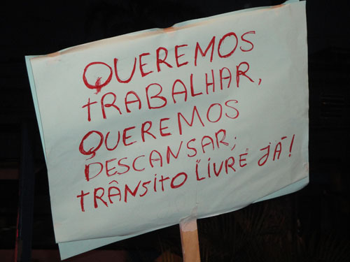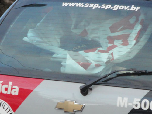 A polícia acompanhou a marcha a bordo dos veículos, espirrando, vez por outra, spray de pimenta sobre os manifestantes. Paulo, outro que não quis dizer o sobrenome, vice-presidente da Associação dos Moradores do Jardim Eliana, teve o rosto queimado pelo spray que foi lhe atirado diretamente: “jogou assim, o jato na minha cara mesmo… tá queimando”. Além disso, quando algum manifestante se colocava na via, os policiais aceleravam violentamente os carros, chegando algumas vezes a atingir a pessoa para que essa voltasse para a calçada. Os participantes começaram a gritar palavras de ordem como “abaixo a ditadura” e “o povo na rua, Kassab a culpa é sua” e a cantar “eu sou brasileiro, com muito orgulho, com muito amor”, como única forma de reagir à truculência policial, já que o número de manifestantes era pequeno em relação ao número de policiais. Como resposta, a Polícia Militar soou as sirenes dos carros, tornando o canto quase inaudível a quem estava do outro lado da avenida.Final Infeliz